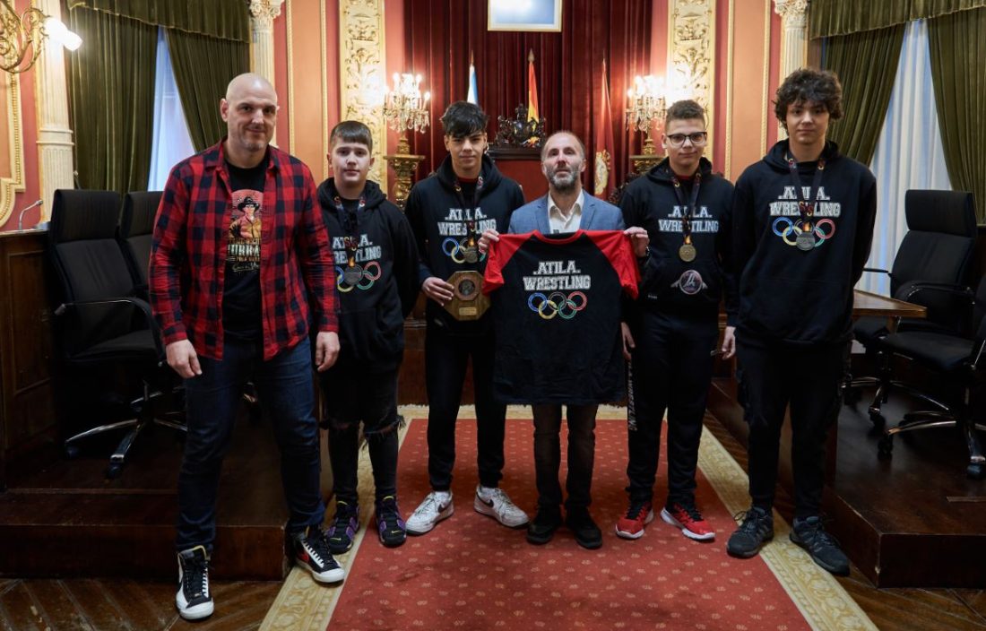 El equipo Atila de Ourense fue recibido en el salón de plenos del Concello por el alcalde Gonzalo Pérez Jácome, tras su destacada actuación en el Campeonato de España de luchas olímpicas celebrado el pasado fin de semana en Carmona, Sevilla. Rafael Borrajo y Joel Crespo del equipo Atila lograron dos títulos de campeón de España, mientras que Alexandre Grediaga y Artai Czarnecki obtuvieron dos medallas de plata. Además, el Atila Wrestling fue premiado como el tercer mejor equipo de España en la categoría U15.